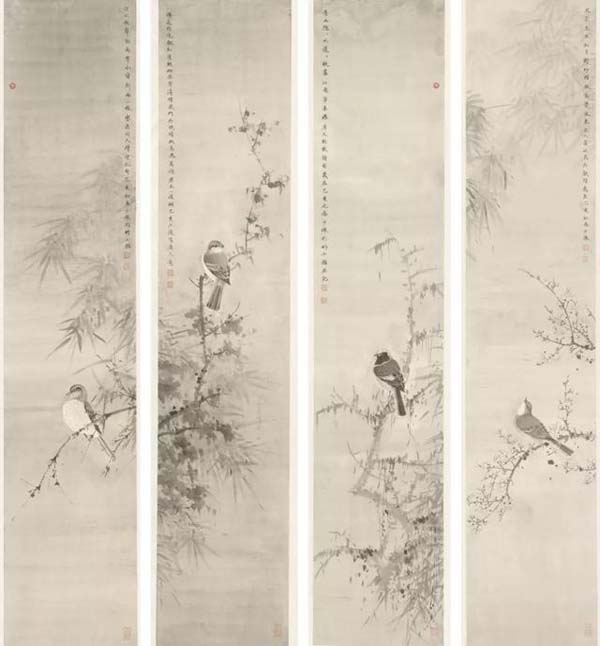 赵少俨作品 《花鸟四条屏》
